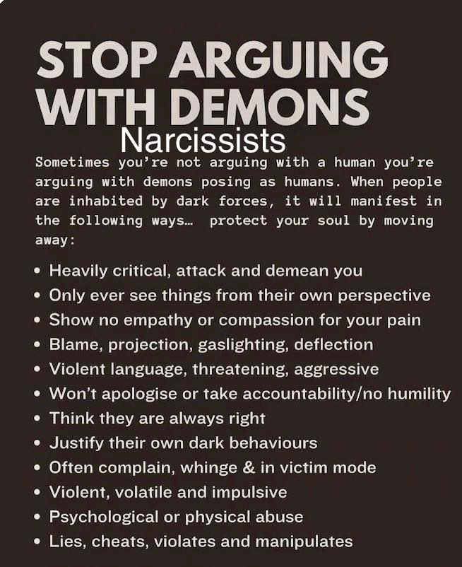 Narcissists need a source of supply and the people in their closest sphere of influence become that source of supply. Deep down they are weak individuals with a poor sense of self worth but they hide behind a mask of pride and arrogance. Many times this disorder is developed during childhood through an abusive parent or sibling. The narcissist takes on this personality as a defense mechanism to survive, however, it develops into a self destructive lifestyle. They usually end up destroying the people closest to them and eventually self destruct. Due to the nature of this psychological disorder, the narcissist is rarely able to emerge from this disorder. Many psychologists believe there is a demonic aspect to this disorder. I have experienced instances where I’m sure the actions of my ex-wife were a direct manifestation of a demonic power driving the behavior. Kris Reece has an excellent resource dealing with this demonic influence you will find below.